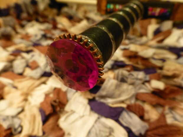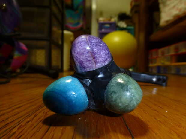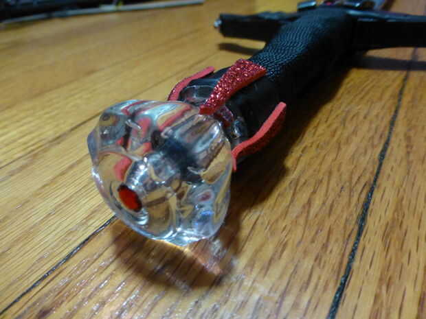 Si usted no está preocupado por golpear gente con el pomo, puede utilizar cualquier cosa - mármoles, joyas de plástico, piedras. No tengo un proceso específico para la fijación de estos, porque cada pomo tiene sus retos. Pegamento, cinta o alambre generalmente hace el trabajo.
