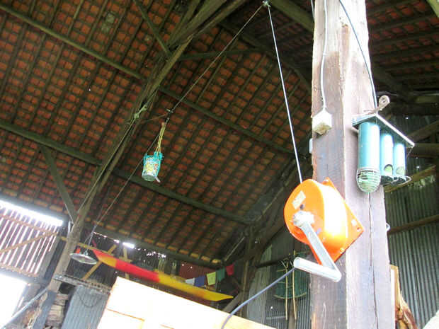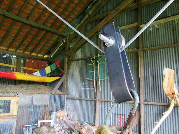 Todo lo que necesitas es tal malacate y un puñado de pullys - personalizado hecho con chatarra de acero y 'los de acero ruedas de una puerta rodante'.