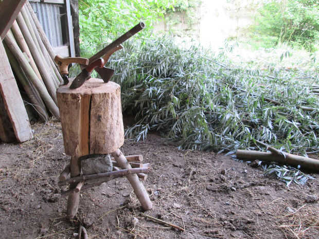 Guardar las cuchillas y ejes en una caja de herramientas es bueno, pero echando en un tocón es mejor. Roca así que ellos, los tocones.