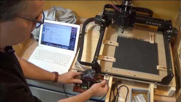El material es cargado en mi maquina X talle y afianzado con abrazadera. Tuve cuidado de dejar espacio alrededor del borde de mi imagen para permitir las abrazaderas de material. Sin embargo, en el futuro creo que debo buscar en un sistema de cuña para la celebración de la materia. He visto a otras personas hacer eso, que tiene rápida sin obstruir la superficie en todo. Un detalle poco cuidado es espacio libre para las ruedas de carro Y. Uno de mis pinzas se fue extendiendo debajo de la viga del eje y, y las ruedas del carro la golpeó. Afortunadamente cogí durante la calibración o habría arruinado mi proyecto.