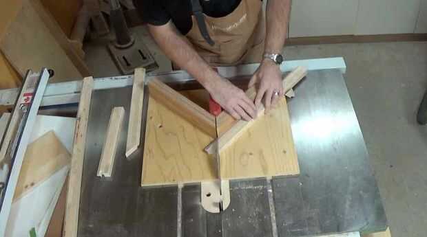 Usé una plantilla biselada en mi Hanon para cortar perfecto grado cuarenta y cinco ángulos en los extremos de las piezas del marco, como se muestra en la tercera foto.