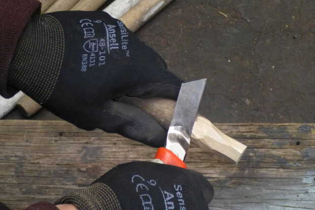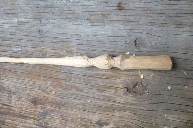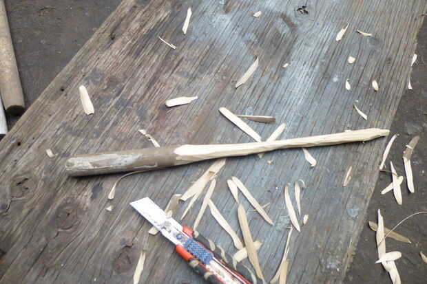 Una cosa buena sobre el uso de escoba postensada es que son de madera ligera y blanda, por lo que la talla de procesarlo es más fácil. Use siempre guantes fuertes y gafas de seguridad y recuerda siempre al empezar a tallar ' corte siempre lejos de su cuerpo. Tardo unos 10 minutos para hacer la forma básica de la varita. Empecé con diseños simples y entonces hago más complicados como el torcido y unos rizado. No Betadine cualquier poder herramientas en mis tiempos libres tomar una pieza de madera y mi corte de caja y comenzar a crear. Tener en cuenta la forma y la forma de las fibras de la madera. / ***Si bien es cierto la madera de la están hechos los mangos de escoba o traperos no hijo de la mejor calidad gracias a es una madera suave y liviana los resultados hijo estreno. Gracias a su tamaño se pueden sacar tres trozos de madera de un solo mango de escoba, aproximadamente de 33cms, cada uno. El de utilizo burdo para un tallado cortador, recuerda, SIEMPRE, utilizar guantes y gafas de protección, tallar de adentro hacia afuera, NUNCA, hagas el corte hacia ti, las heridas pueden ser graves. Una vez se haya adelgazado la madera debes cambiar la herramienta de tallado por un cuchillo de campaña de menos corte, y comienzas a darle la forma a tu voluntad teniendo en cuenta la fibra de la madera. El proceso de talla me tomo unos 15 minutos. Luego debes lijar la madera para que no queden astillas incomodas y suavizar la superficie.