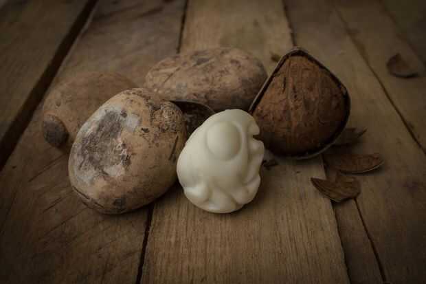 Tagua (también conocido como marfil vegetal), pronunciado/ˈtaɡwə/o Ta-Gwa es una nuez que crece en ciertos tipos de palmeras de América del sur. Es un material impresionante, super duro, natural que es divertido para tallar. Antes de la invención de plásticos Tagua fue exportada a Europa y Estados Unidos para la industria del botón. Usted puede poner en un mini torno y vuelta un montón de botones o pequeñas tazas o lo que sea. Hoy en día todavía se utiliza Tagua para botones en la industria de la moda de gama alta (o lo leí). Y se utiliza extensivamente en la fabricación de la joyería en Ecuador.