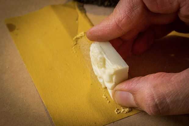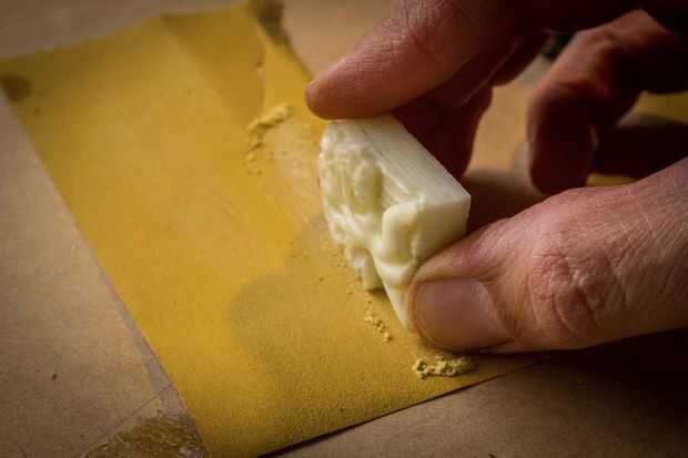 Utilizar un papel de lija de 220 grano y arena suave. Luego utilice grano 400.