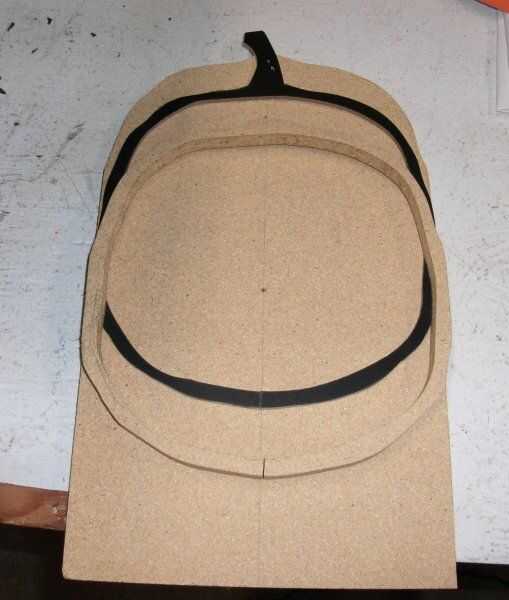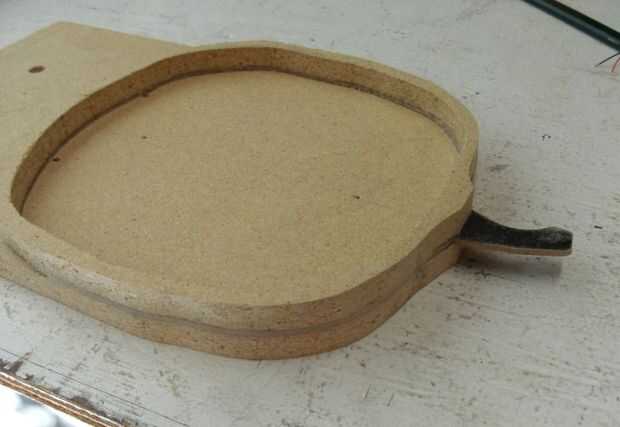Corté otro trozo de MDF de 1/2" para la placa base. Esta Junta debe ser el ancho de la base de calabaza (7 7/8" en mi caso) y 13" de alto, dejar espacio para montar las células solares por debajo de la calabaza. Coloqué la forma calabaza desde arriba en el tablero en la parte superior y trazó la curva superior de la calabaza, cortando en la sierra.