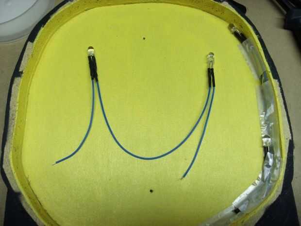 Quería que la instalación sea bastante fácil de abrir copia de seguridad y servicio si tengo problemas, como el tener que reemplazar una batería recargable o un LED. Encontré estos cables de puente Schmartboard en Radio Shack. Solo se empujan en las patas de los LEDs para que los LED pueden ser reemplazados fácilmente. (Foto 3) Los 2 LEDs en cada circuito se conectados en serie para un cable de puente está intacto para ejecutar desde un ánodo al cátodo y un puente de alambre, corte por la mitad (foto 4) y soldadas a los extremos del cable. Del encogimiento del calor de uso cinta de tubería o eléctrico para cubrir las conexiones soldadas. (foto 6) Asegúrese de que usted es cuidadoso unir el puente positivo de la batería al ánodo par LED y el cable puente negativo al cátodo LED par.