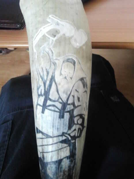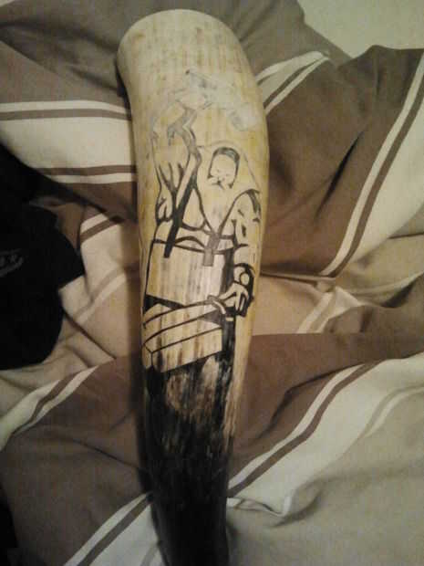 Talla de cuerno fue más difícil de lo que esperaba, el cuerno es muy duro. Sin embargo, cuando los contornos donde tallado, capas de cuerno eran fáciles de quitar debido a la estructura en capas de un cuerno. He añadido algunas fotos de mis trabajos en curso. Al hacerlo por primera vez sugiero a confiar en sus propias habilidades que mejorarán durante la talla. Esta es la manera me las arreglé para obtener mejores resultados de lo que esperaba.