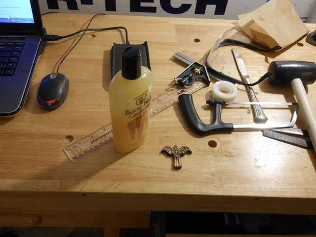 Puesto que toda la superficie visible de alguna manera fue quemada, no había ningún sentido en el uso de una mancha. Yo simplemente aplica un aceite de bloque de carnicero con un trozo de tela, para darle una capa brillante.