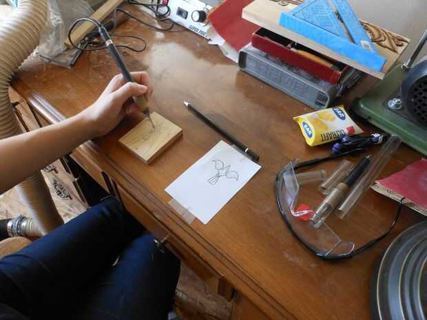 Usé mi consejo favorito para la tarea, uno en forma de espada. Tiene un filo y una punta fina, por lo que permite un montón de movimiento y precisión para largas filas al mismo tiempo. Intente que sea tan limpio como sea posible, como los errores son difíciles de corregir cuando se quema.