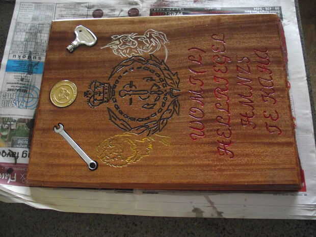 En este caso escogí hacia fuera las diferentes partes en diferentes colores esmalte pintura y configure la llave etc. en epoxídica clara 2, otros simplemente mezcla un poco de pintura con epoxi y en la escobilla de goma luego de la arena cuando se seca