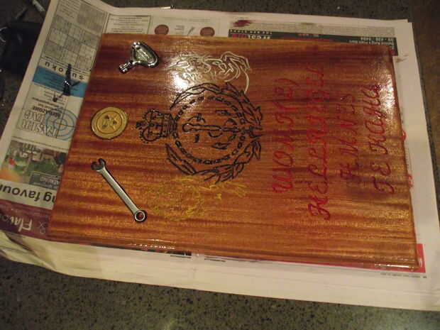 La placa de presentación tiene 2 capas de poliuretano tintes y barnices, los dos peces estaban rellenos con epoxi de parte 2 con el esmalte negro un poco en la mezcla, arena, después engrasado como fuera, volver a aceite sobre una vez al año