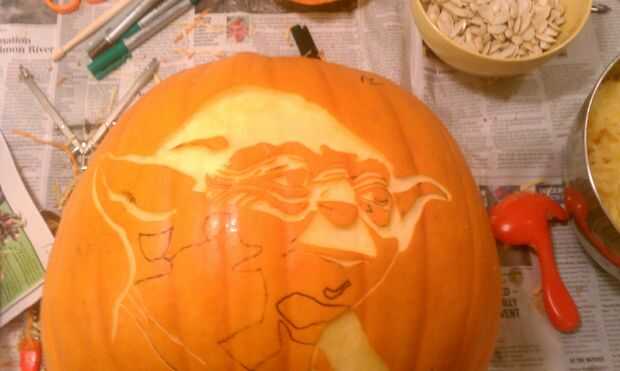 -Puedes utilizar algunos vaselina en todas las de la carne de calabaza expuesta si quieres que dure más. Lo hice el año pasado porque talló mi calabaza una semana antes de halloween, pero este año lo talló el día anterior, por lo que no era necesario.