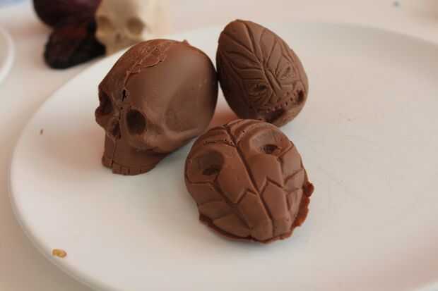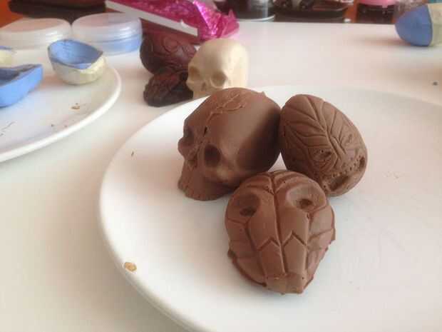 Puede arrancar una muesca utilizando alimentos pintura o decoración. Estos achocolatados loveys duró bastante para ser pintado o decorado. Aunque tenía planes de usar la hoja de oro comestible en el cráneo.