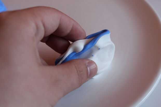 La pasta de moldeo de silicona usé pidió una proporción 50/50 de la azul y blanco.