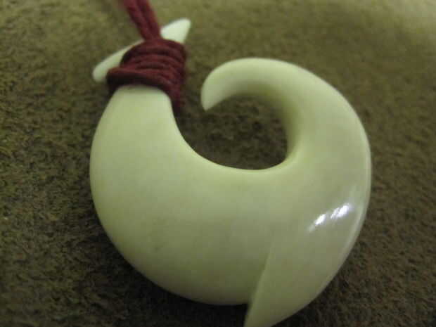 Esto es un gancho maorí tallada en hueso de vaca. Talla de hueso es un proceso bastante lento... Esta había tallada en el transcurso de dos días.