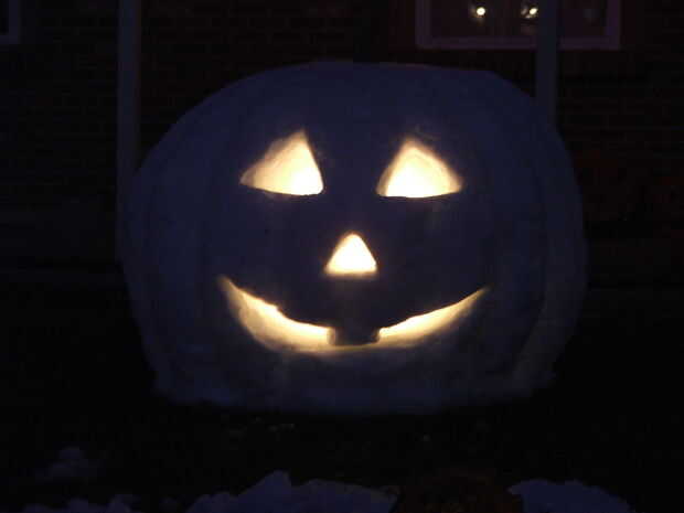 Esta presentación empieza con la calabaza en su estado natural y luego muestra que luego es tallada y retroiluminado.