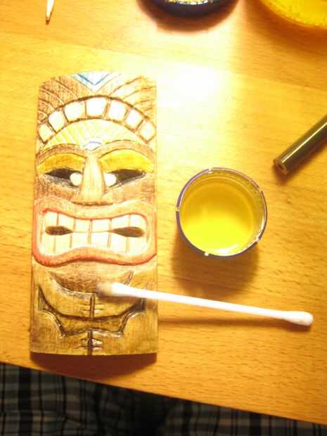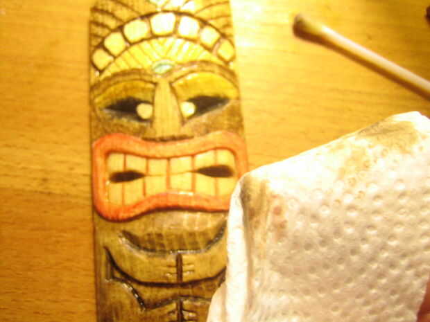 Luego aplicar el aceite de linaza cocido con un intercambio de algodón y deje reposar unos minutos. Después de eso, puede sacar el exceso de aceite y pigmento con una toalla de papel. El aceite de linaza tiene un poco de tiempo para secar (en realidad, no seca, oxida) dejarlo así por lo menos durante la noche. A continuación, puede añadir más color y unas cuantas más capas de aceite repitiendo el proceso y dejar que se seque después de cada capa. Si usted siente que la madera está saturada, su trabajo está hecho!