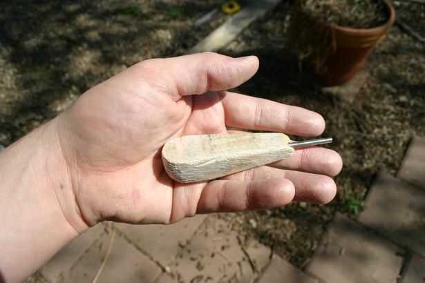 fácil de hacer uno de una pipa de tabaco bueno.Elementos necesarios:Pequeño burlGubia de pulgarPaso de la tubería (enciendo mi)Taladro y brocaSizer índice brocaLijadora (opcional)Pulimento de grado de alimentosPaso 1: hueco Usando tu gubiado excavar