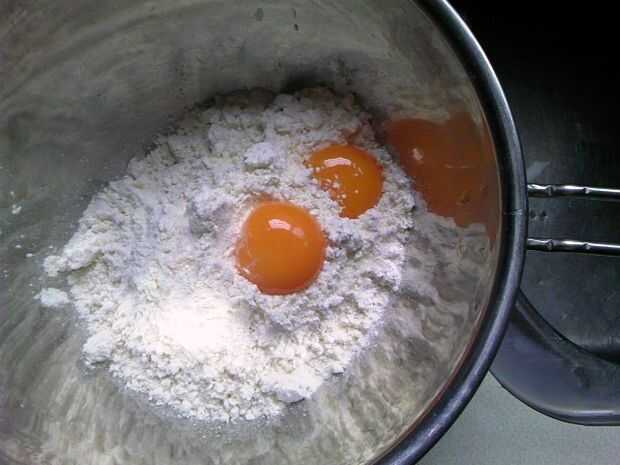 Paso 2: Goteo dos yemas y 1g de sal en ella