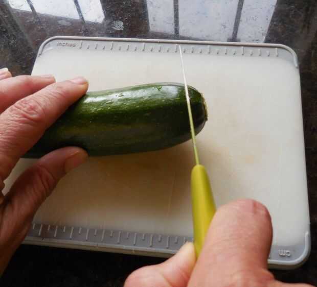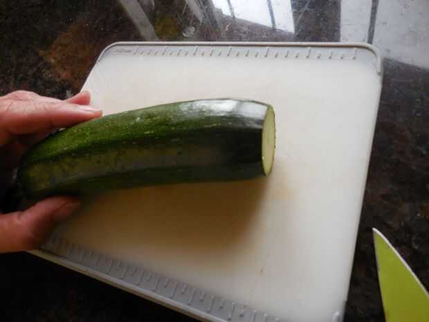 Cortar un calabacín, 2 amarillo y rojo pimentón. Poner en una sartén con un chorrito de agua y aceite. Agregar el cebollino, eneldo, pimienta, sal y un polvo de la paprika. Dejar cocer a fuego lento con tapa hasta que el pimentón es suave. Añadir el