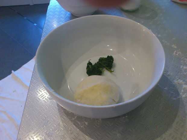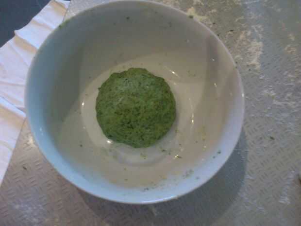 incorporar la espinaca a la primera porción de la masa