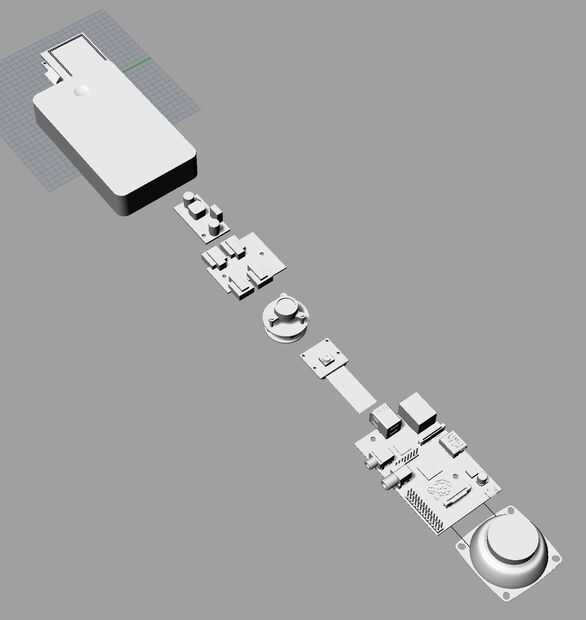 Antes de diseñar un recinto, hemos tenido que medir cada componente que nos fuimos pegando dentro. En teoría, diferentes dispositivos se construyen usando su sistema local de la medida (métrica en todo el mundo excepto los E.e.u.u.). En la práctica, encontramos que cada dispositivo se llegó a un valor métrico bastante redondo en milímetros, incluso el micrófono del copo de nieve azul.