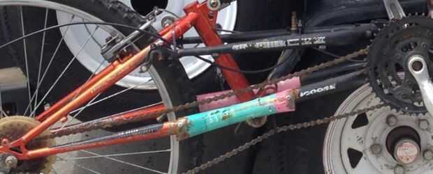 6. ahora tome el menor permanece en la bici buena y ponerlos en el lado de las estancias de las motos mal. Los Jam allí cerca de 4 pulgadas y luego deslice los tubos en el paso 5 sobre los tubos. Como en la imagen de arriba. OK... esta es la parte que debe ser ajustable para ahora mismo para no soldar sin embargo.