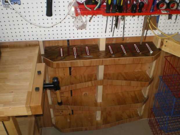 Estas extrañamente en forma de estantes me permiten ver lo que hay en cada estantería cuando mira hacia abajo. El estante superior se cubre con una pieza de contrachapado, con ranuras de corte en la parte superior esa línea para arriba con contenedores en la plataforma. Usar las ranuras a corta tuercas, pernos, tornillos, arandelas, etc.. Cuando quite la parte superior, el hardware es todo bien separado.