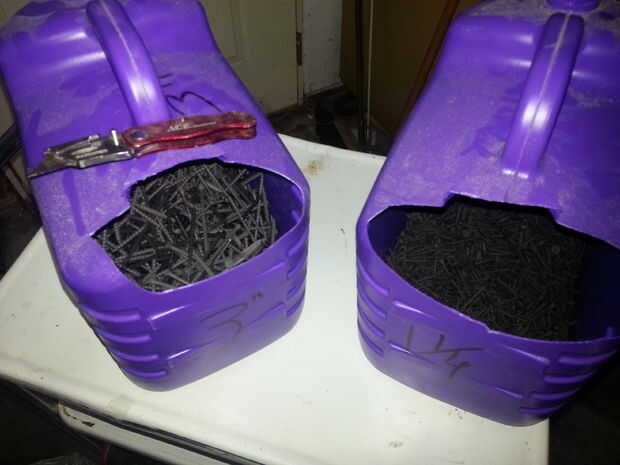 La lavandería jarras mantienen grandes cantidades de los tornillos afilados no se despegan y pueden ser fácilmente escribió con un marcador para clasificar tamaños.