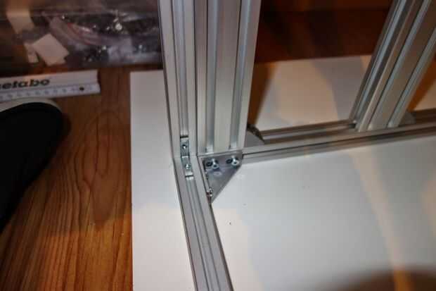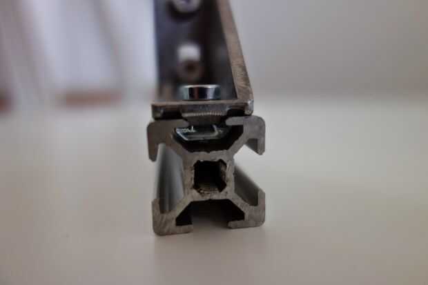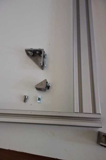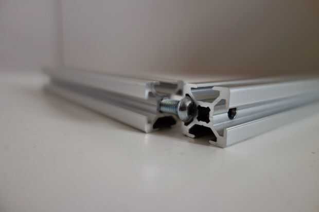 Consejo: Conectores y abrazaderas de esquina cuestan más, que las protuberancias. Puede guardar los conectores, si taladra un orificio en el extremo de la extrusión para girar el tornillo (debe ser el lente tornillo M6) en la extrusión opuesta. Algunas protuberancias ni siquiera es necesario tocar.
