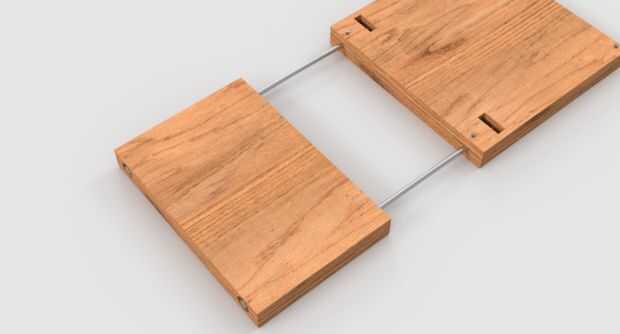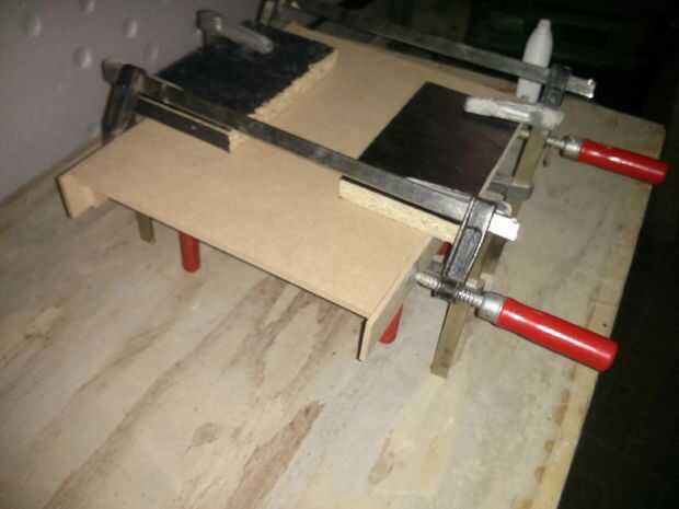 - Es casi imposible hacer un largo agujero en la placa de ajuste la varilla roscada. En cambio la madera fue cortada paralela a la dirección del desplazamiento. Entonces fue molido en el interior con un router - esto crea un túnel para la barra. Después de eso, todo se pega juntos. Por suerte mi hermano es carpintero, tenía las herramientas adecuadas para ello.
