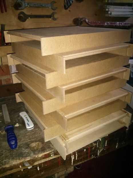 Hice los cajones de MDF. En el front-end, puse una extrusión de aluminio. Esto las hace verse mejor, pero está destinada principalmente para mantenerlos en su lugar una vez que están dentro del marco.