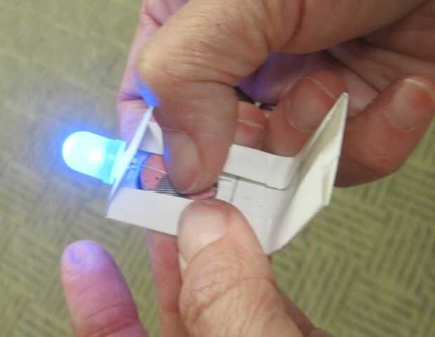 necesarios1. 1 pedazo de papel blanco.. .white es la mejor porque la luz brilla a través.2. tijeras3.1 o 2 linternas led... o cualquier tipo de luz LED puede ser utilizado. Cualquier otra fuente de luz no es lo suficientemente oscuro4. cintaPaso 1: C