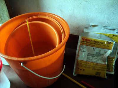 Según el procedimiento del paquete preparé el material revelador y del fijador para papel y película.