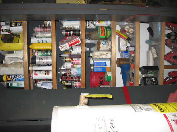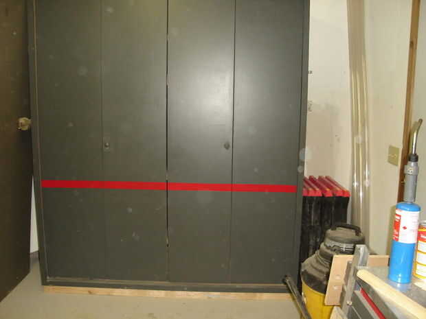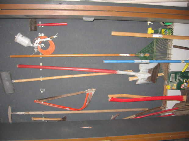 Hice 2 más de estos tipos de gabinetes de ambos eran 4 pies por 11 3/4 profundidad. La altura fue determinada por puertas bifold de la venta de garage tengo 5.00 un conjunto. Puse un soporte de osb 1/2 en estos gabinetes para fijar a la pared y luego los estantes. Uno de los armarios era para mi auto suministros-gato, limpiadores, trapos, anti freeze, cargador de batería, aceite y chispa bujías limpiaparabrisas etc.. Estantes se midieron y permitir el almacenamiento de la mayoría de los elementos necesitada. El otro gabinete creado para almacenar yarda herramientas-rastrillos, hacha, pala, azadón, machete, hacha etc.