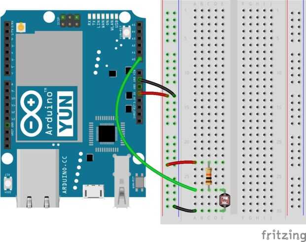 En este laboratorio utilizará dos resistores - una resistencia estática y una resistencia variable - para crear un divisor de tensión que le permite comprender efectivamente la intensidad de luz detectada por un fotoresistor - esencialmente un medidor de luz. En la lección anterior aprendió a enviar la salida y en esta lección usted aprenderá a recoger la entrada.