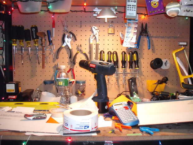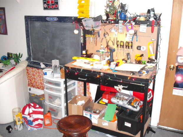 después de ser frustrado por no tener suficiente espacio para trabajar, no siendo capaces de encontrar las herramientas adecuadas y suministros y pasar demasiado tiempo buscando cosas, decidimos limpiar un cuarto del sótano y construir un taller. Apr