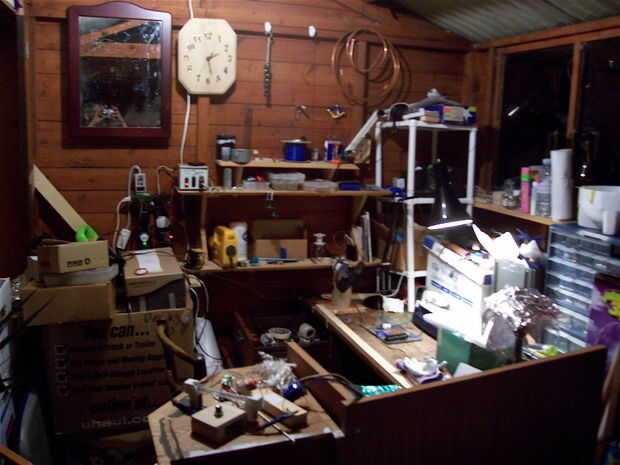este es el lugar que la mayor parte de mi trabajo es llevado a cabo. no es muy grande y no tengo muchas herramientas a diferencia del taller de Plasmanas pero es suficiente para mi nivel de trabajo.y cuando vuelva de la costa, hacer un banco y ponerl
