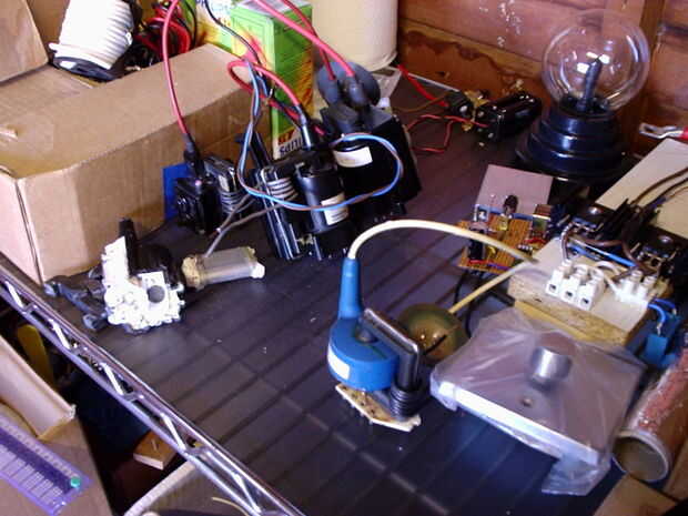 Yep, en eso poco golpeado poco cobertizo, que es donde construyo algunos de mis proyectos más impresionantes, los altavoces de plasma, generador de marx, pequeño shocker y así sucesivamente. La razón de mi taller es tan desordenado es porque de todos mis tiempos de recoger cosas gratis de Salta o contenedores de basura, (gracias a todos ustedes tontas personas para tirar grandes cosas en la basura para que me recoja! :-)