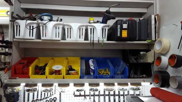 Estante intermedio cestas con cestas de manijas mantienen como elementos juntos y asas facilitan bajar sin caer todo.