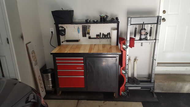 En la parte actualización de cosas hemos trabajado hacia fuera aquí mucho y lo que he notado es que el diseño no es bueno para más de una persona trabajando en el mismo espacio. Así que reemplazamos el espacio ahorro de rodillo para un muro completo con 2 estantes de longitud completa.