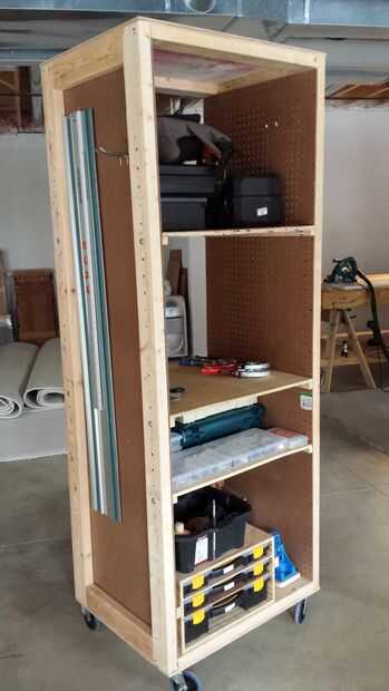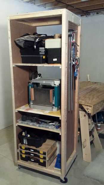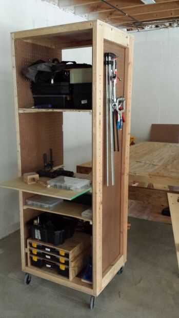 me mudé la tienda en el sótano aún durante los meses de invierno que puedo aparcar mi coche en el garaje para algunas mañanas más fácil. En ese sentido, no quiero construir nada permanente en el sótano para almacenar todas las herramientas que tengo en este momento, pero muy rápidamente, encontré que iba desde sótano a garaje algo que constantemente durante el proyecto. Así que decidí mover la mayoría de las herramientas hasta el sótano y averiguar una solución (mueble) para lo que se movió hacia abajo. Esta unidad de almacenamiento debe hacerse también por lo que puede ser utilizado en el garaje o fuera cuando se pone más caliente.