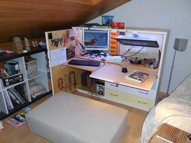 aunque el taller artesano del concurso de futuro es no abrir para mí me gustaría mostrar mi pequeño laboratorio caja de herramientas o secreto.Vivir con mi pareja es somos dos artistas loco en un apartamento de dos habitaciones (por lo tanto, por qué