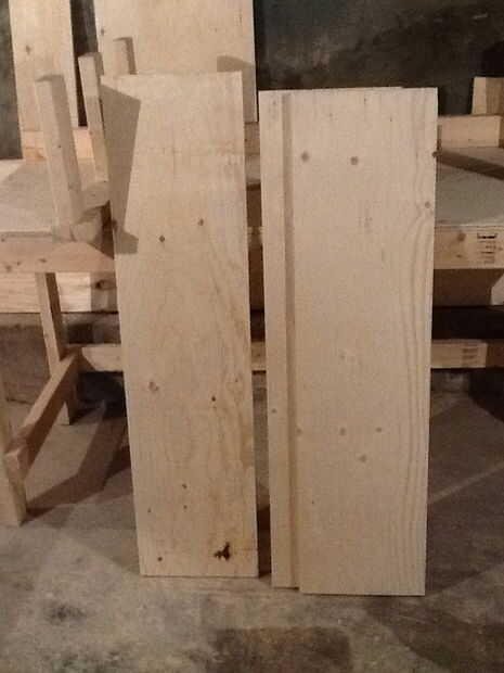 Hice los estantes sólo 48" de largo como que quería reducir al mínimo la flexión de la madera contrachapada. También se puede ver el apoyo de dos 2 x 4 en la parte posterior para distribuir la carga en todos los estantes de tres.