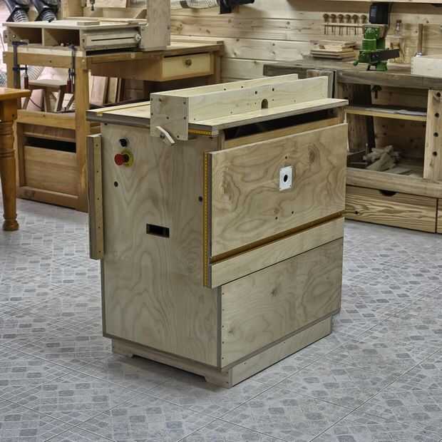 Quería que mantener tan pequeño como sea posible para aquellos de ustedes que no tienen mucho espacio o su automóvil y herramientas comparten el mismo lugar. Tiene ruedas por lo que puede ser movido por sólo una persona y que incluso lo puedes llevar en tu coche con un poco de ayuda para conseguirlo, por supuesto. Como se puede ver tiene 3 funciones. Mesa, fresadora y Sierra de la sierra. También tiene un armario grande que se puede utilizar para llevar algunas de sus herramientas con usted.