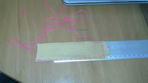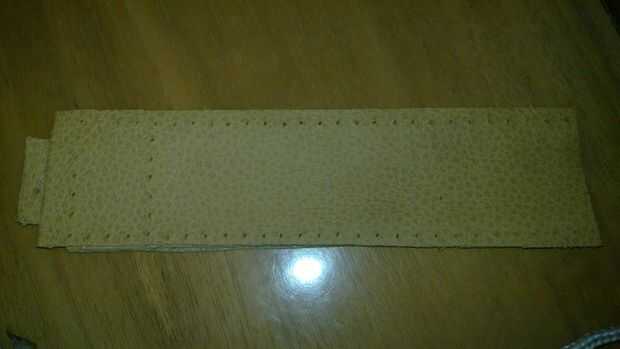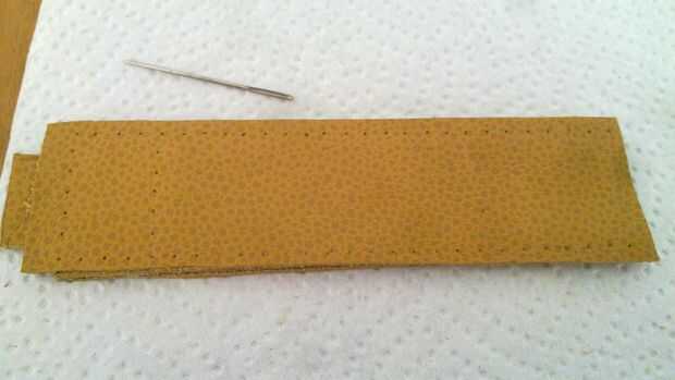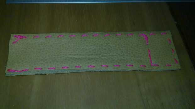Después he pegado juntos todas las tiras de cuero he cosido también juntos las partes.