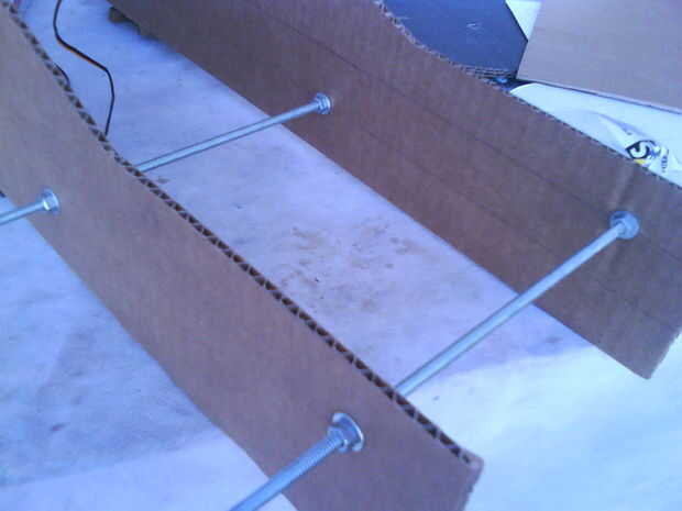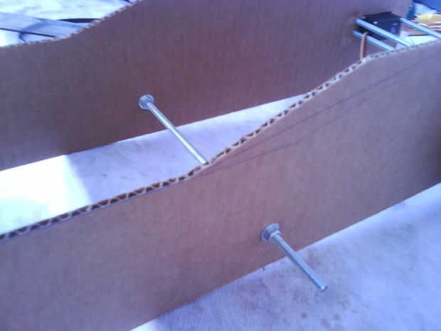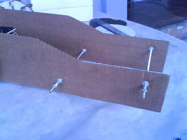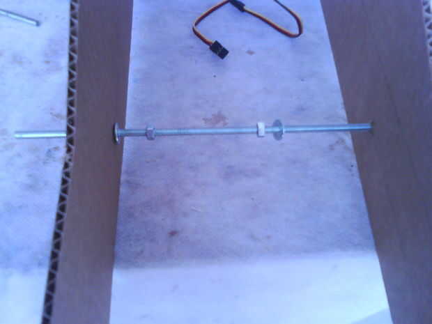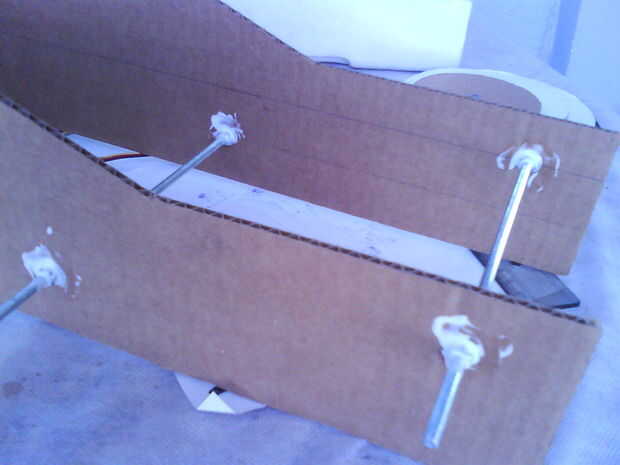 Tornillos se utilizan para separar las ruedas de lado y apoyar al mismo tiempo. Una vez colocado en el lugar correcto, usé una gota de pegamento en cada tuerca para bloquearlos.