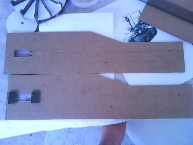 En lugar de servos, ponga un trozo de cartón en el exterior, como la imagen, para que las ruedas estaban un poco más lejos de los lados del vehículo.
