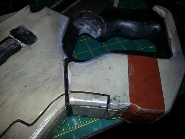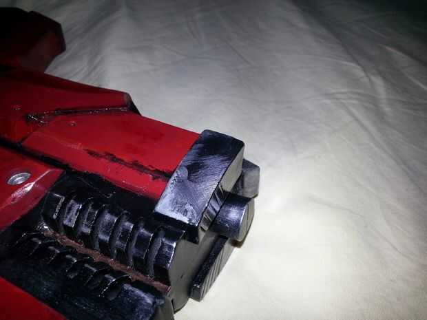 Uno de mis mejores aplicaciones de RnB fue en un casting por Apoyos de entrelazamiento cuántico que pinté encima (la pistola de roja y negra arriba). Me había puesto mis aerosoles un poco pesados y herida para arriba con una carrera. Lija el funcionamiento apagado, pero luego en lugar de pintarlo, simplemente apliqué RnB sobre los arañazos de la lija. El resultado fue una esquina arrastrada mira muy natural!