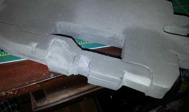 El siguiente paso que hice fue cortar las zonas de inserción de la pieza de la manija superior y en los lados de la parte posterior de la pistola, por encima de la empuñadura.